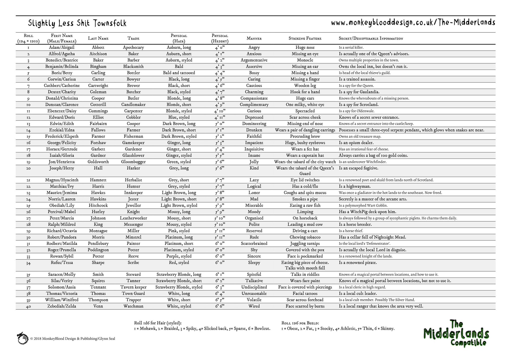 More fodder for your ‘The Midderlands’ OSR campaign setting.